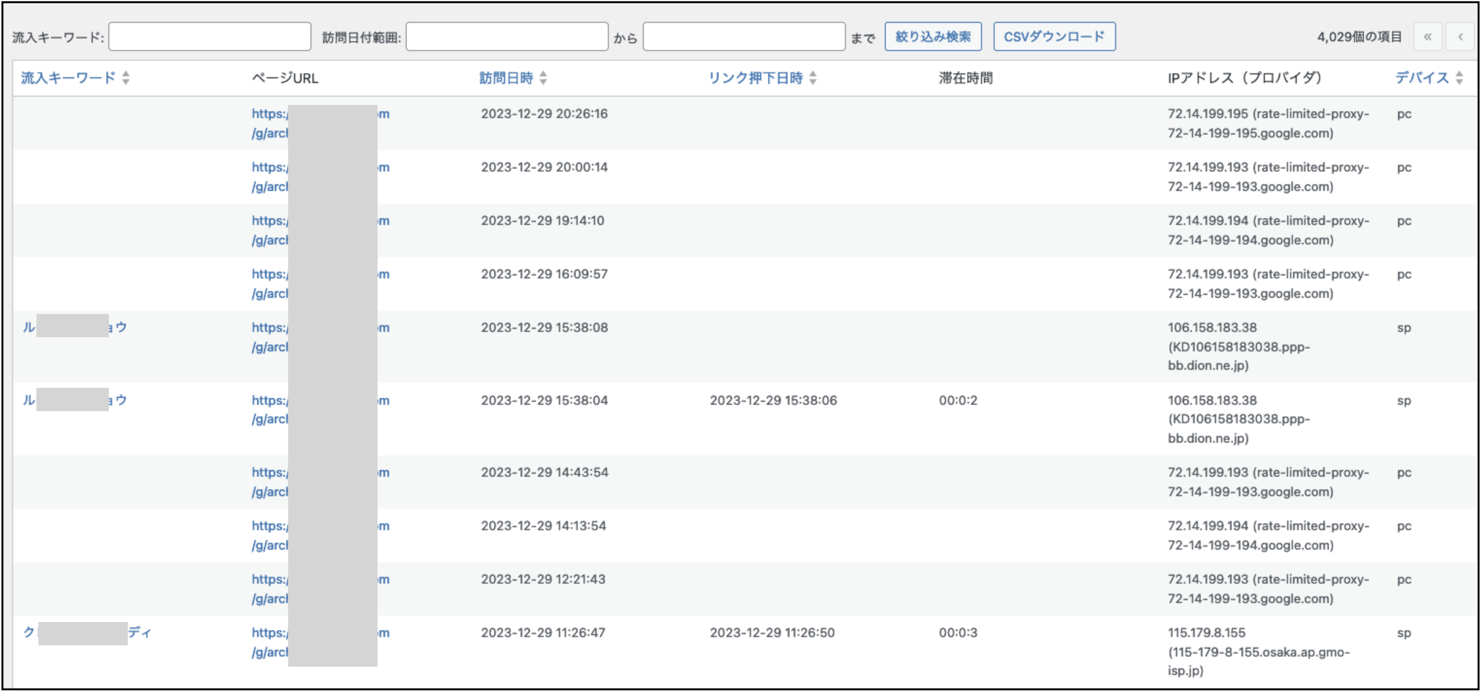 ⑤ サイト訪問者のIPアドレス及びデバイス解析